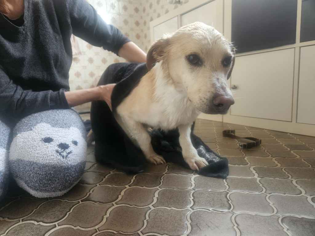 Maxi, abtrocknen nach dem erstes Bad